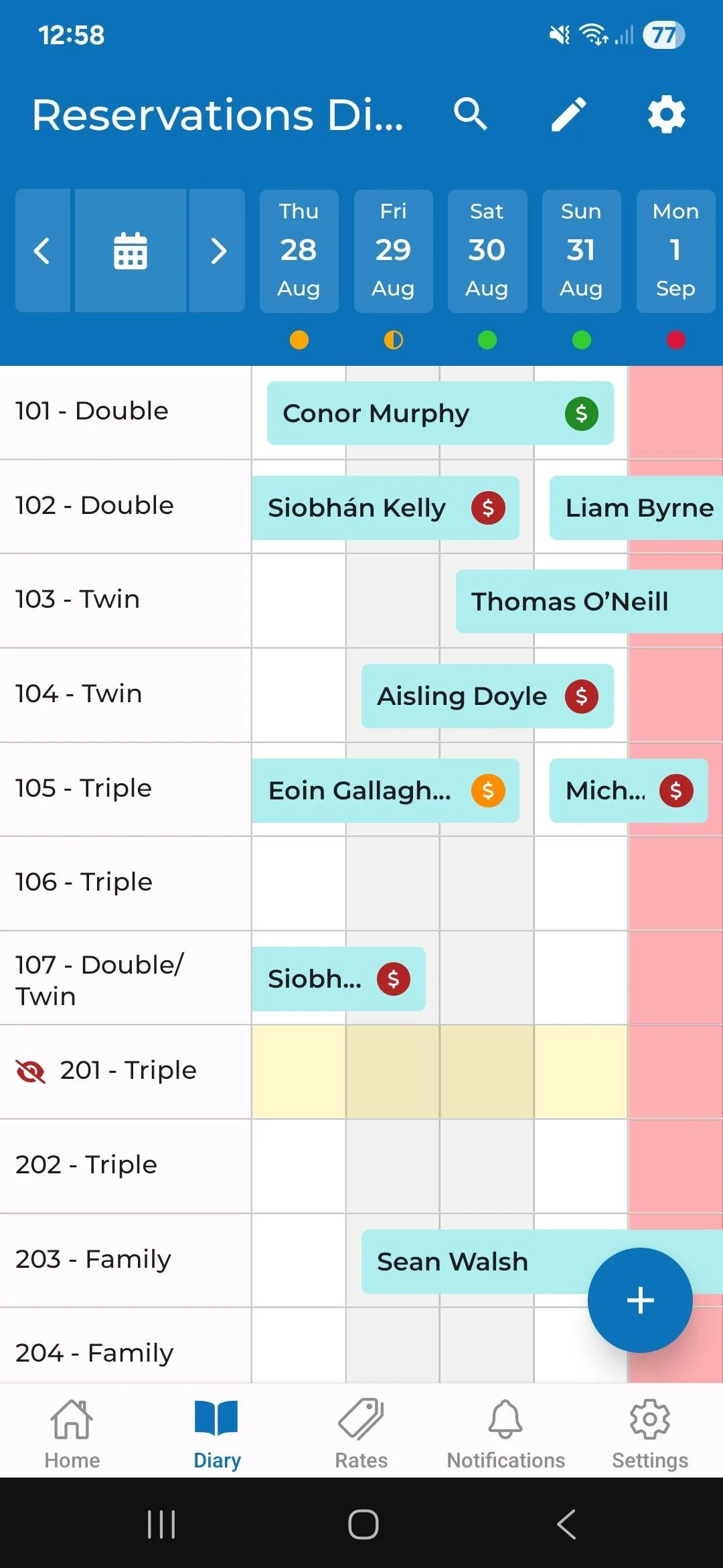 GuestDiary App Reservations Screen